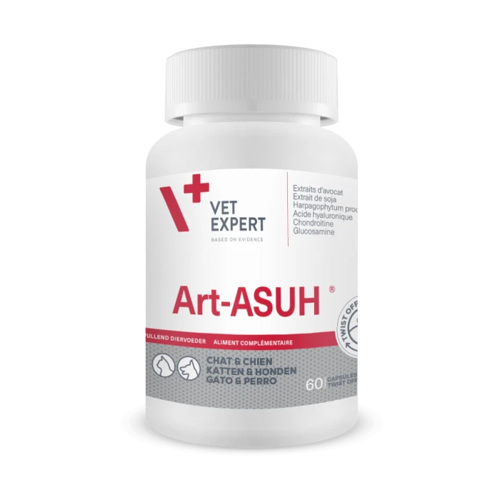 Le complément alimentaire Art-ASUH de Vetexpert soutient le fonctionnement des articulations et de l’appareil locomoteur des chiens et des chats. Il améliore le confort des animaux souffrant de problèmes locomoteurs.