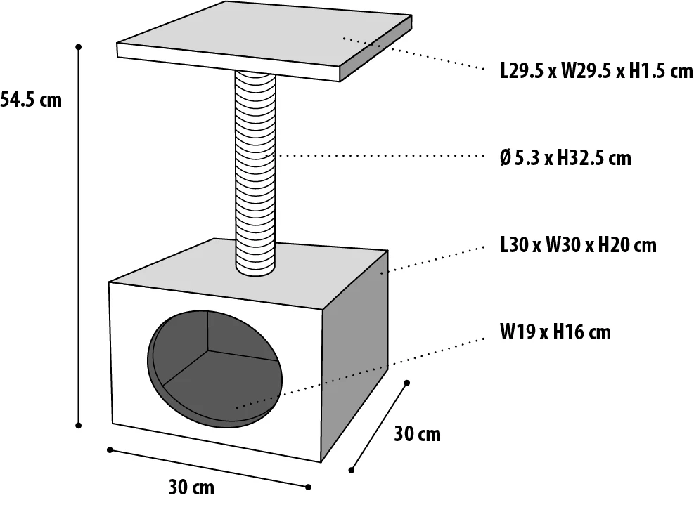 Ce griffoir de base est élégant, compact et offre pourtant tout ce dont votre chat a besoin. Le griffoir est doté d’une plate-forme en peluche douce, d’un trou privé où votre chat peut se retirer pour faire la sieste et, sur le griffoir recouvert de sisal, votre cher animal peut s’amuser et garder ses griffes courtes et pointues.