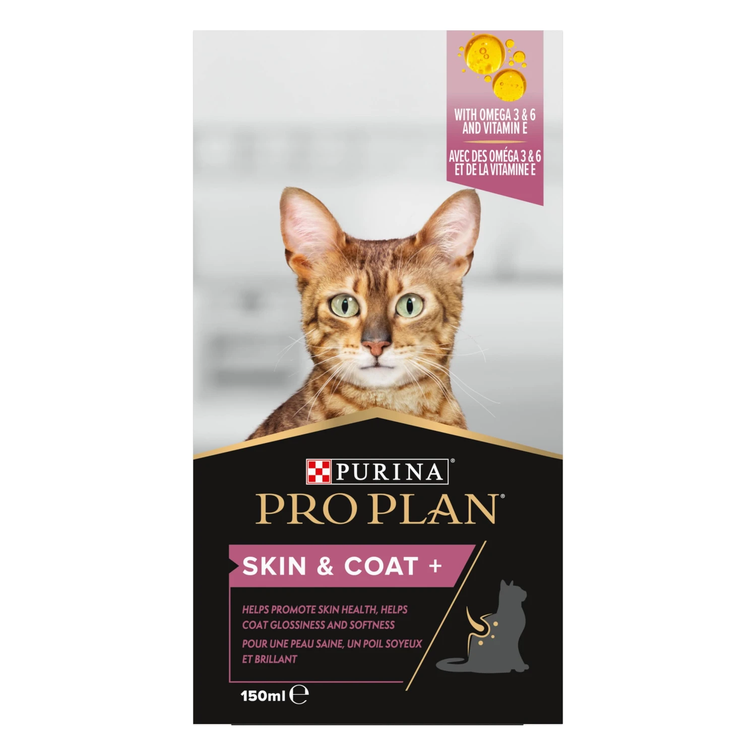 PRO PLAN® a mis au point une gamme d’aliments complémentaires ciblés destinés à agir sur la mobilité, l’immunité, la vitalité, la digestion, la peau & le pelage et le bien-être. PRO PLAN® Skin & Coat+ nourrit la peau et le pelage de votre chat de l’intérieur, grâce à sa formule riche en nutriments essentiels (tels que les acides gras Oméga 3 et 6 issus d’huile de saumon de Norvège, l’huile de lin et la vitamine E). Sa formule est scientifiquement conçu pour : – Soutenir une peau saine, hydratée et souple et un pelage brillant