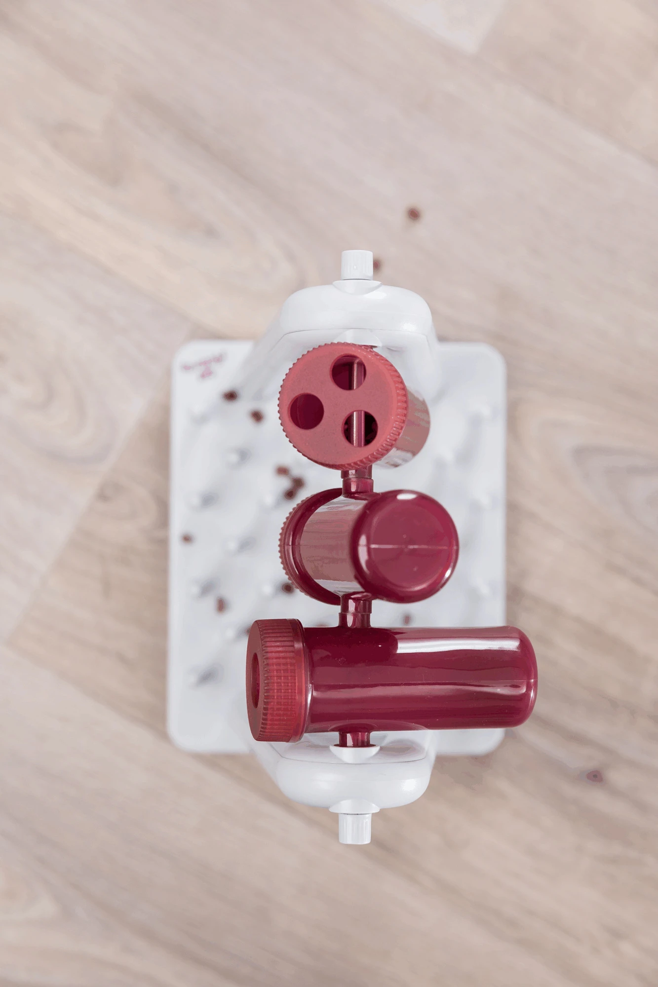 Un jeu interactif amusant pour chats avec un élément rotatif d’où peuvent tomber des friandises. Vous pouvez choisir entre 2 modules de jeu : la plaque de base avec des picots entre lesquels tombent les friandises ou les croquettes ou les 3 éléments rotatifs avec 2 couvercles différents. Les parties rotatives sont également compatibles avec le lave-vaisselle.