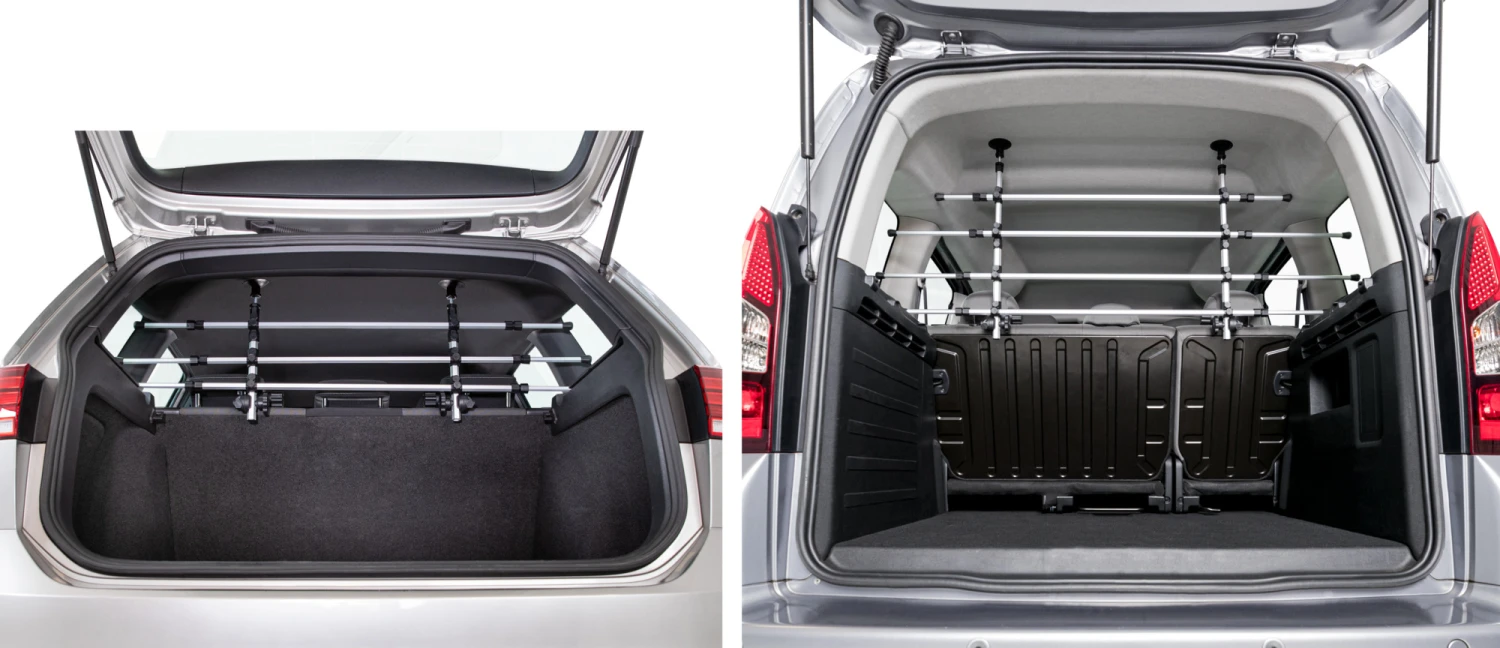 Séparation de voiture qui peut être fixé entre les appuis-tête des sièges arrière et le toit de la voiture.